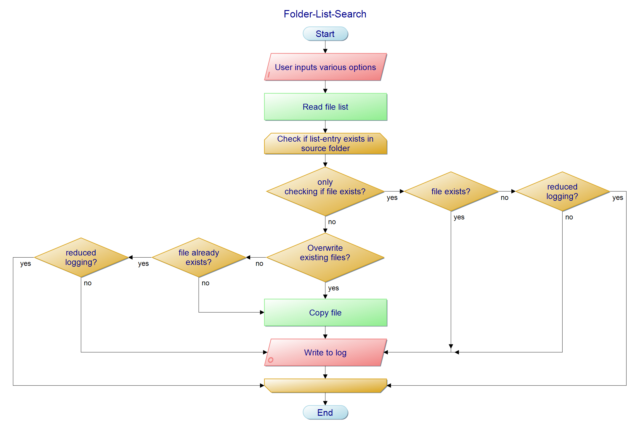 Folder-List-Search Searches a folder for files, that are defined in an .txt list, and copies them to another folder. Flow Chart