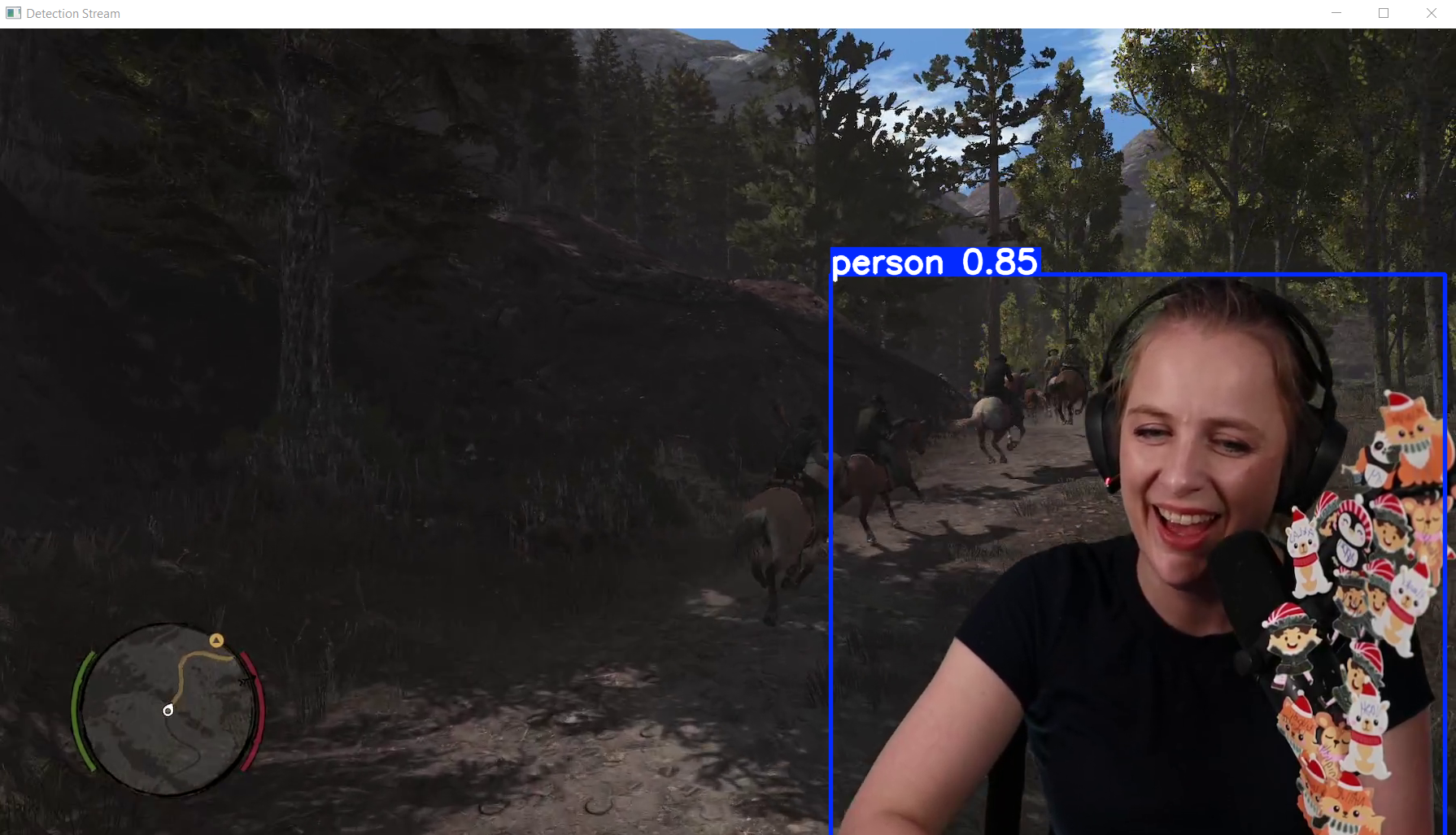 A Python application that performs real-time object detection, segmentation, classification, and pose estimation on Twitch streams using YOLO models. The application supports low-latency streaming with audio playback capabilities.