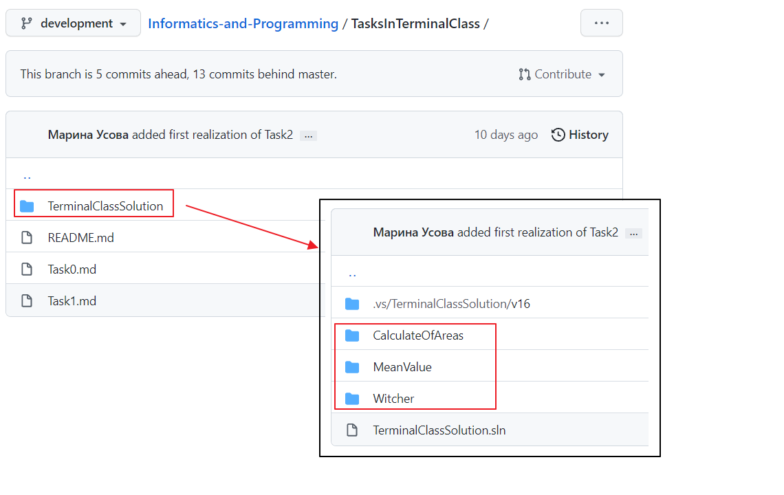 класса (TasksInTerminalClass). Причём внутри каждой из этих папок помимо
