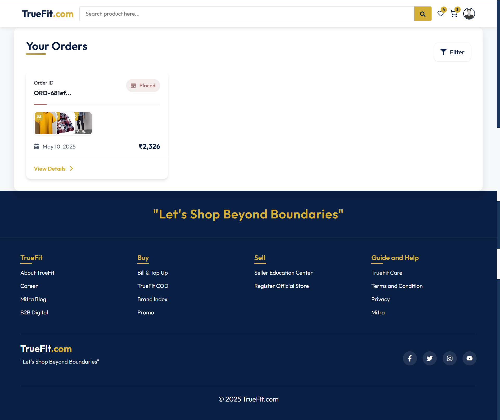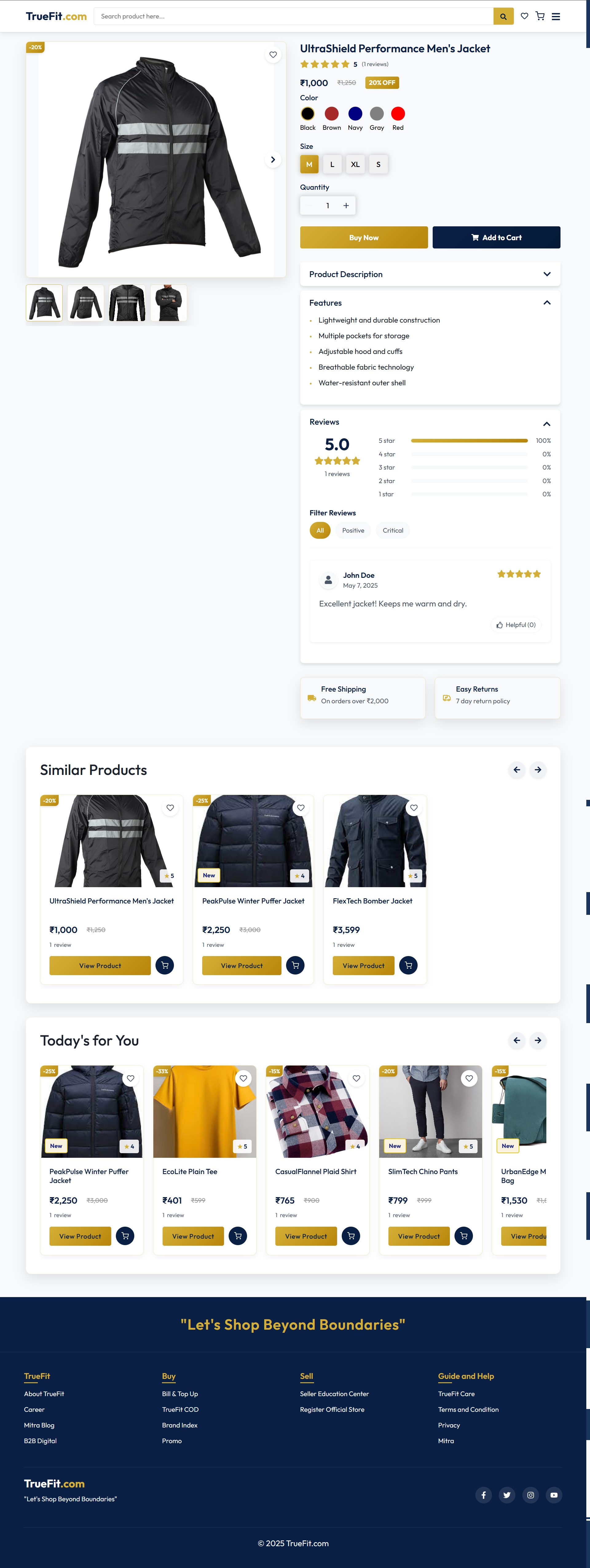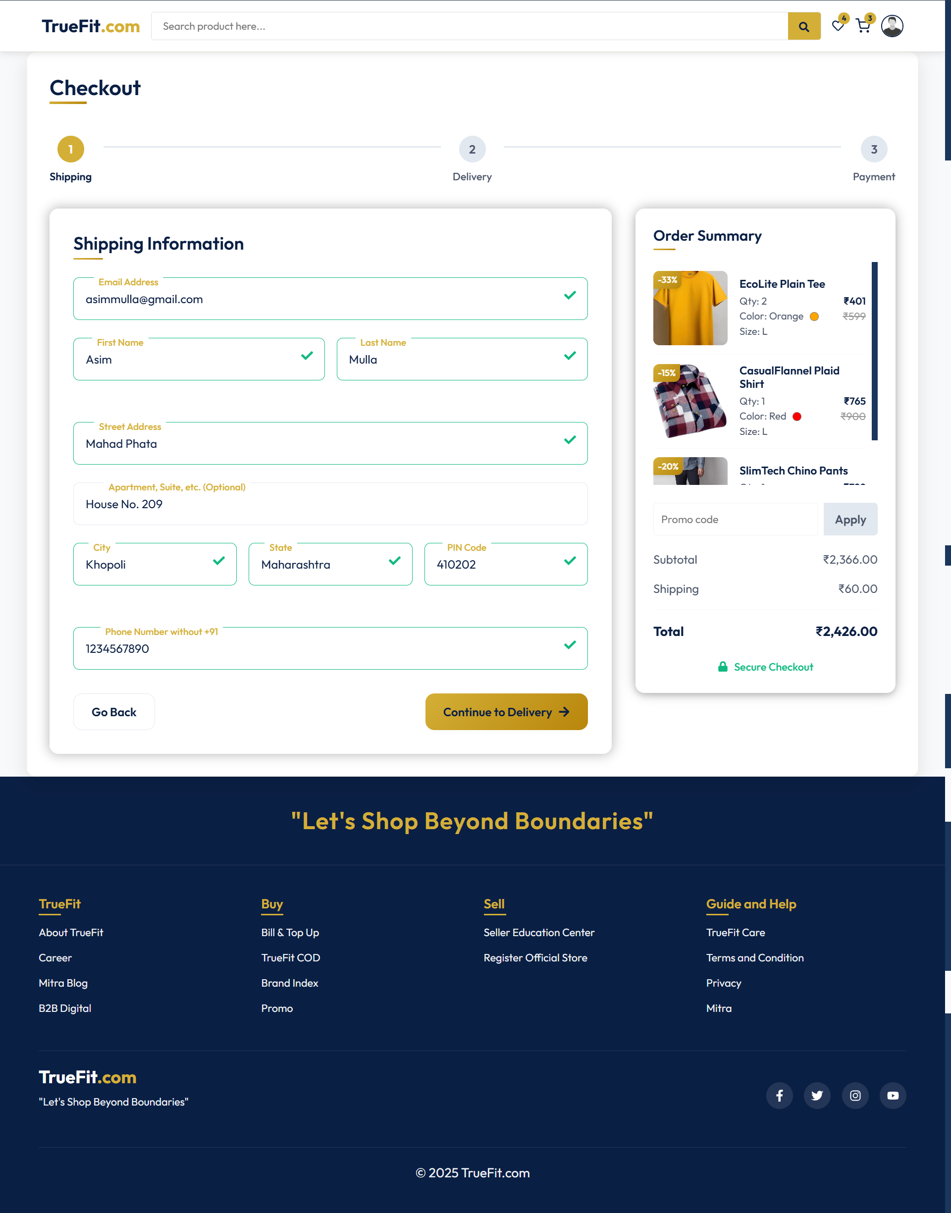 TrueFit delivers a rich shopping experience with features like multi-category product listings, secure user authentication (OTP & Google), wishlist, shopping cart, checkout, order tracking, and user profile management. Admins can manage products, orders, coupons, and the hero banners through a protected interface.