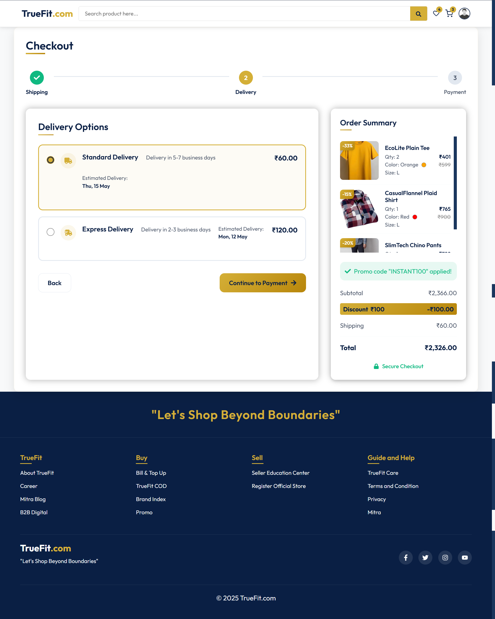 - Multiple shipping speed options (Standard and Express)