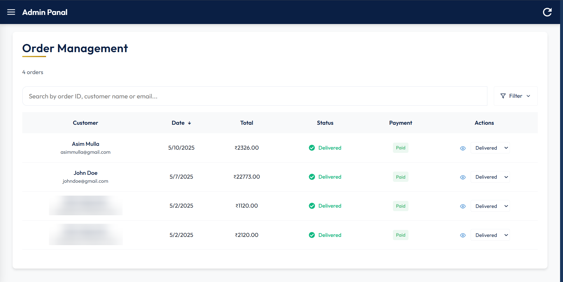- Individual order status management (processing, shipped, delivered, cancelled)