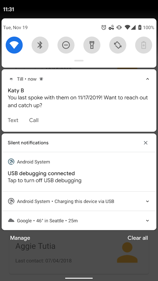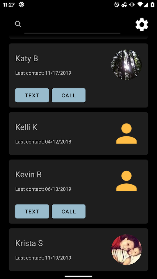 This is a basic application used to keep you in touch with those close to you. It chooses a contact that you haven't spoken to in a while and provides a gentle daily reminder to reach out.