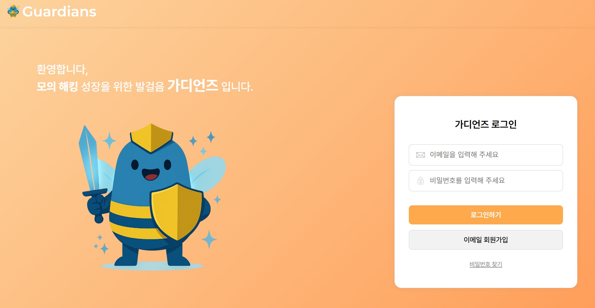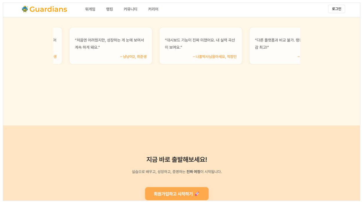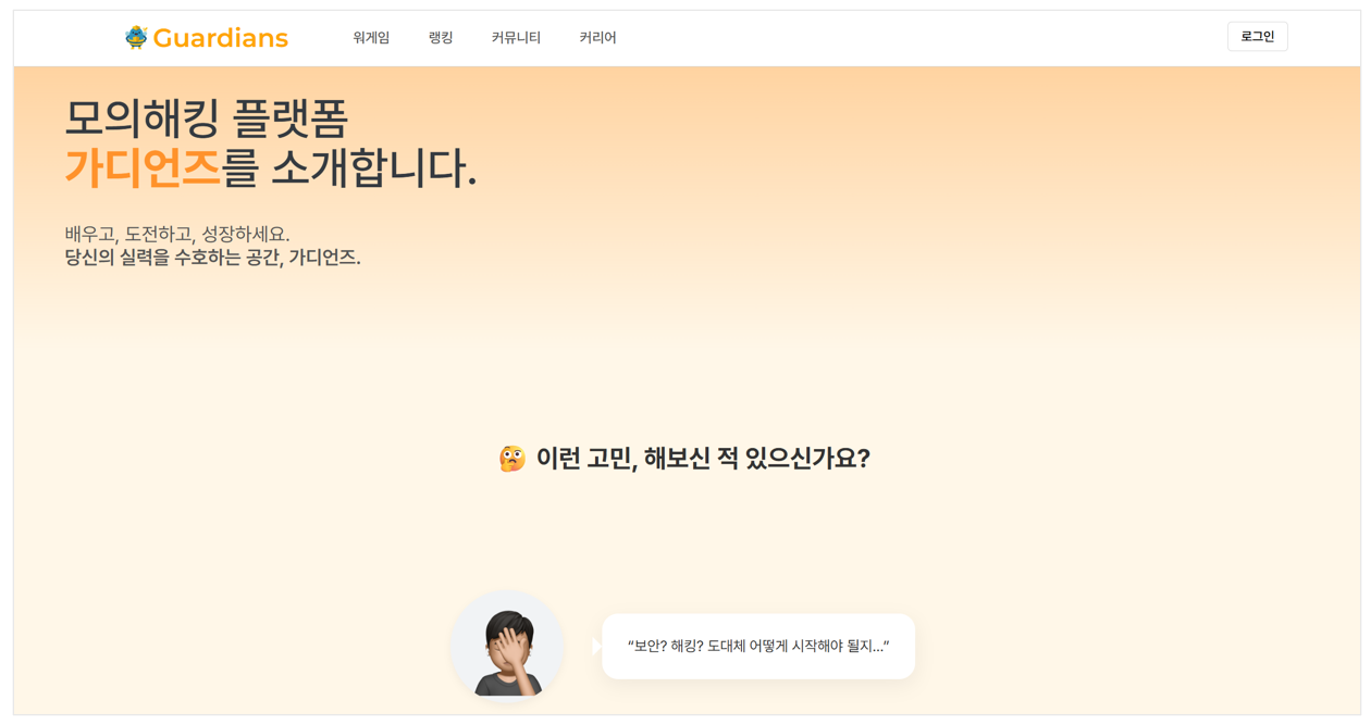 • 플랫폼 소개 영역 : 플랫폼명(가디언즈) 및 핵심 슬로건 소개