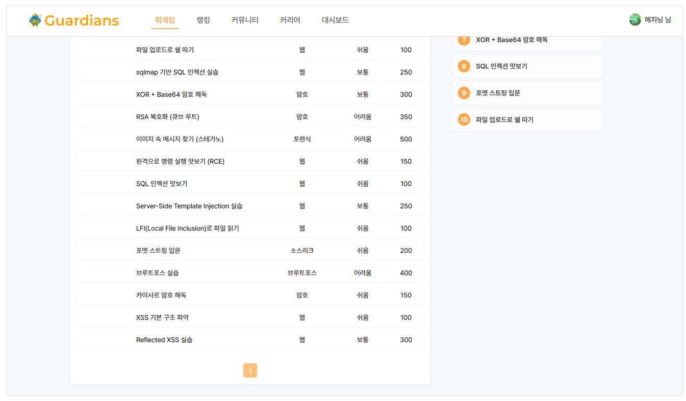 다양한 해킹 관련 문제를 풀어보며 보안 기술을 연습하는 실습 콘텐츠