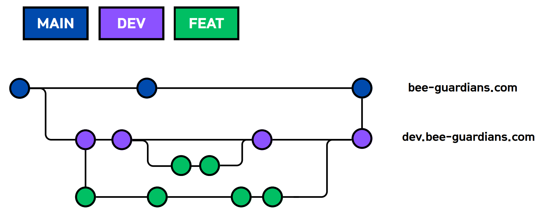 기능 및 페이지 개발은 dev 브랜치에서 일괄 통합한 뒤, 테스트를 거쳐