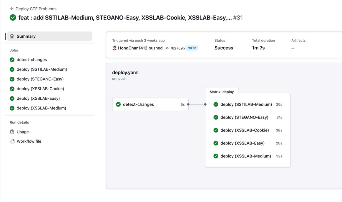 deploy.yaml 워크플로우가 자동 실행되어 병렬 배포가 이뤄짐
