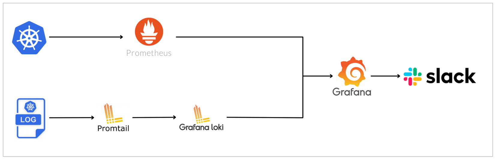 Promtail이 K8s 로그를 수집해 Grafana Loki로 전달하고, Grafana에서 분석 가능하도록 제공