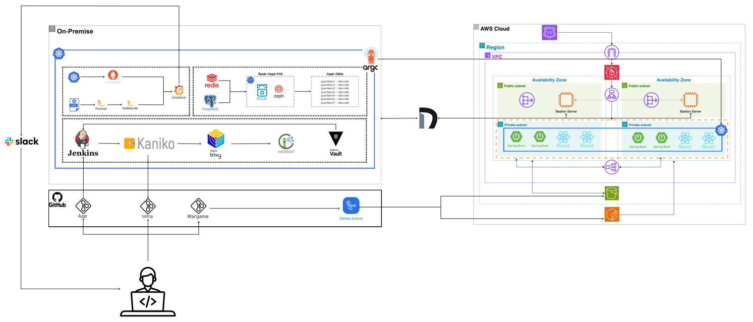 프로젝트 초기에는 AWS 비용을 절감하기 위해 온프레미스 자원을 우선적으로 활용해 인프라를 구성했습니다.