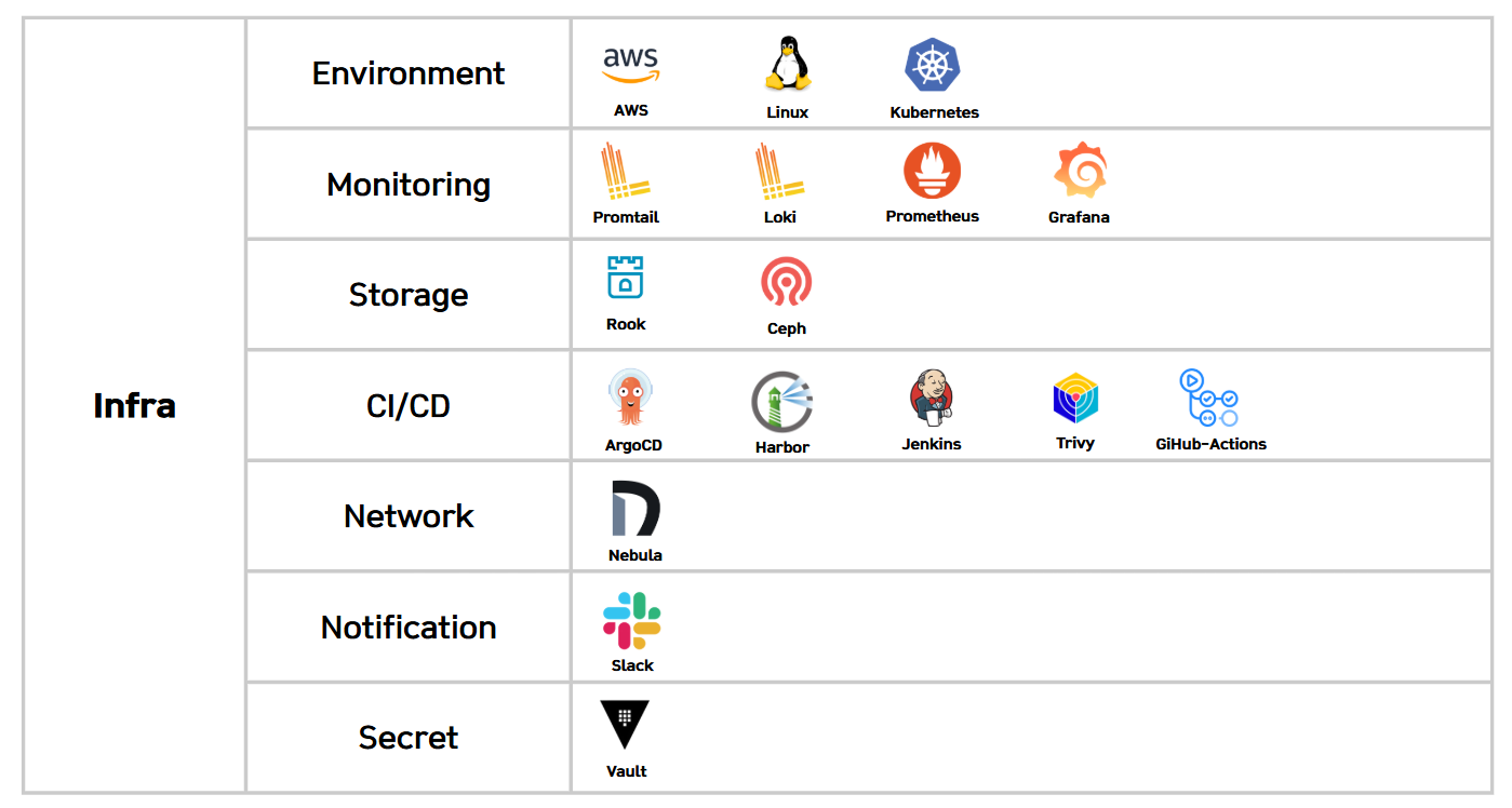 | 스토리지 | Rook-Ceph 기반 PVC 및 Amazon S3 활용 |