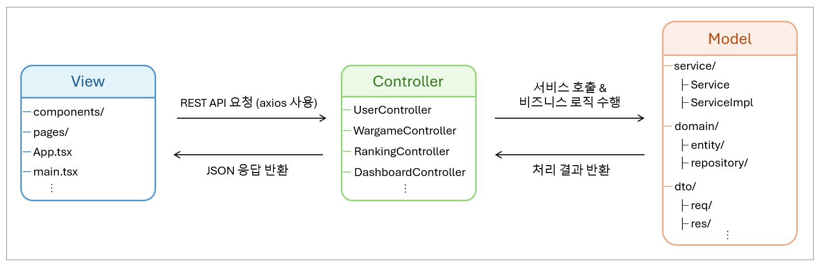 사용자의 워게임 관리, 활동 기록, 성과 분석 등이 유기적으로 반영되는 서비스 구조