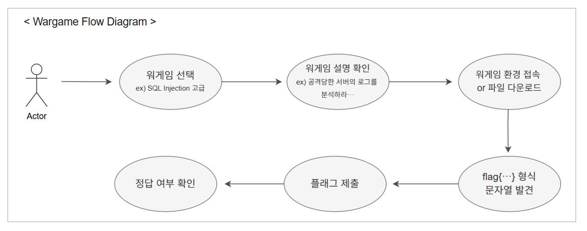 사용자는 웹 해킹/포렌식/리버싱 등 여러 분야의 문제를 해결해나가며 각 문제에 숨겨진 문자열인 ‘flag’를 찾아내는 방식으로 진행됨