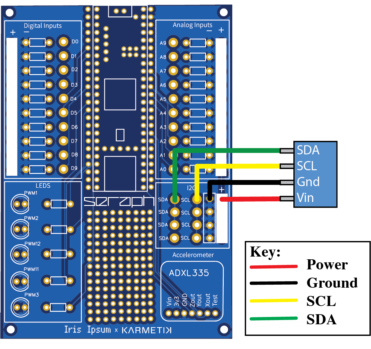 Connect the SDA (Data) pin on your sensor to an SDA pin on Seraph.