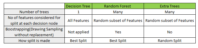 The end-points for a series of decision branches are called nodes, and should ideally match a category of outputs. In this case, an ensemble of such trees was employed in order to enhance accuracy. The extra-trees ensemble algorithm was used. The extra-trees ensemble randomly chooses the thresholds for determining gini impurity. On the other hand, random forests, another ensemble of decision tree classifiers, uses a fixed level for the gini impurity threshold. Both algorithms expose random subsets of the data to each of the sub-estimators. [Tree classification ensemble methods]