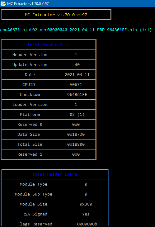 - Ability to automatically extract Intel Extended microcodes
