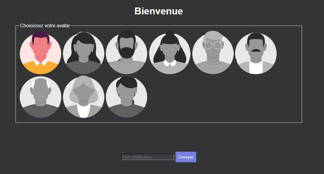 - Création d'un utilisateur à la connexion : choix du nom/image d'utilisateur