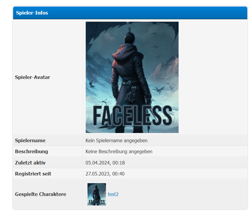 - Angabe des Default-Charakter-Avatars, falls das Avatar-Feld bei einem Charakter leer ist