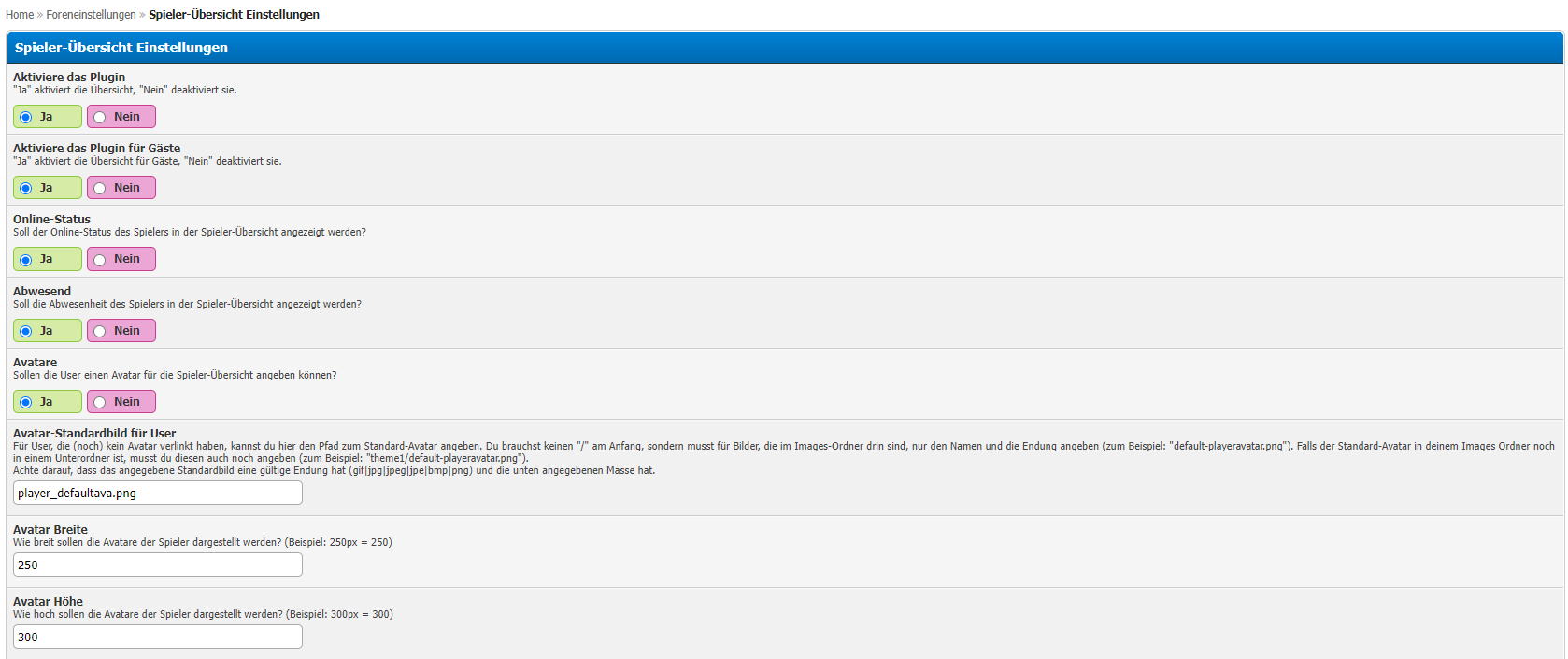 - Angabe des Default-Spieler-Avatars, falls ein Spieler das Feld leer lässt
