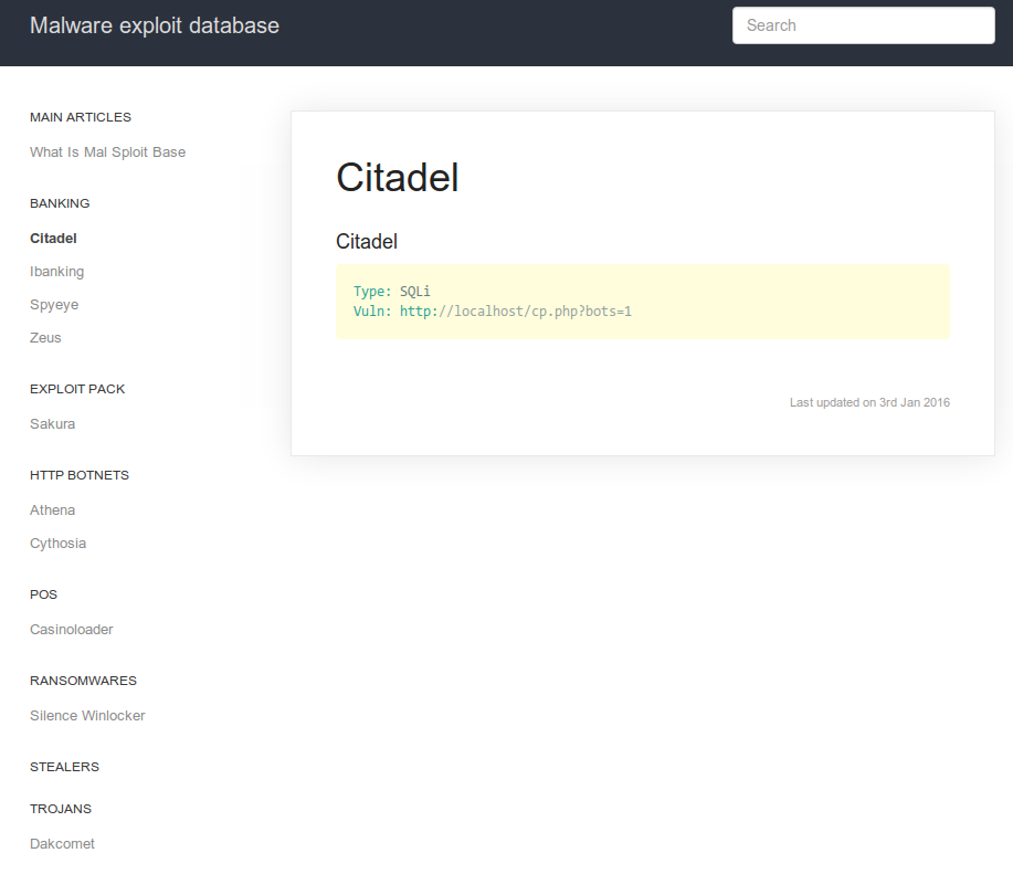 Malware Exploit Database https://www.pwnmalw.re/ Made to be used by Raneto. Feel free to make a PR to add vulnerabilities.