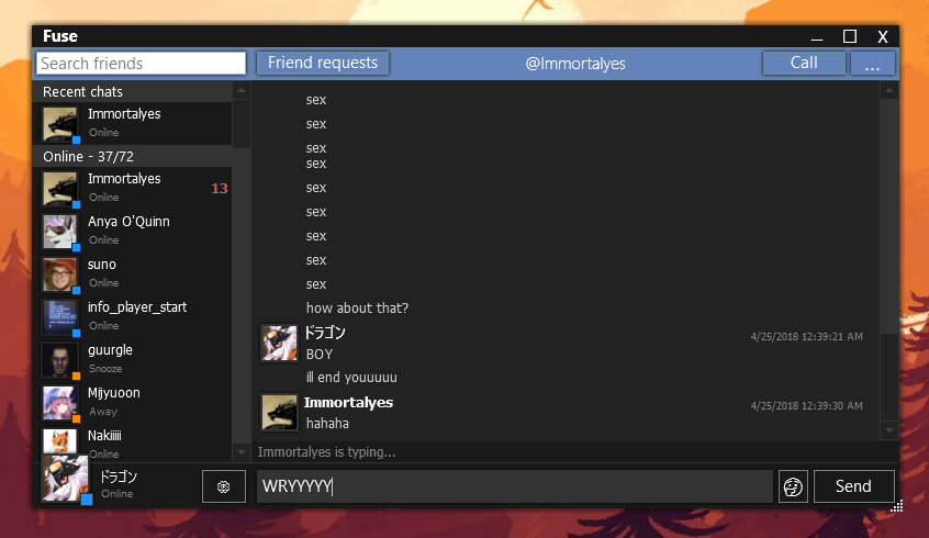 Fuse aims to be easy to use graphically compared to the mess of tabs and windows the default steam client creates to chat with your friends. It also aims to bring some features that should have been here since the start, like chat history, display of pictures from picture links directly into the chat, as well as videos and more.