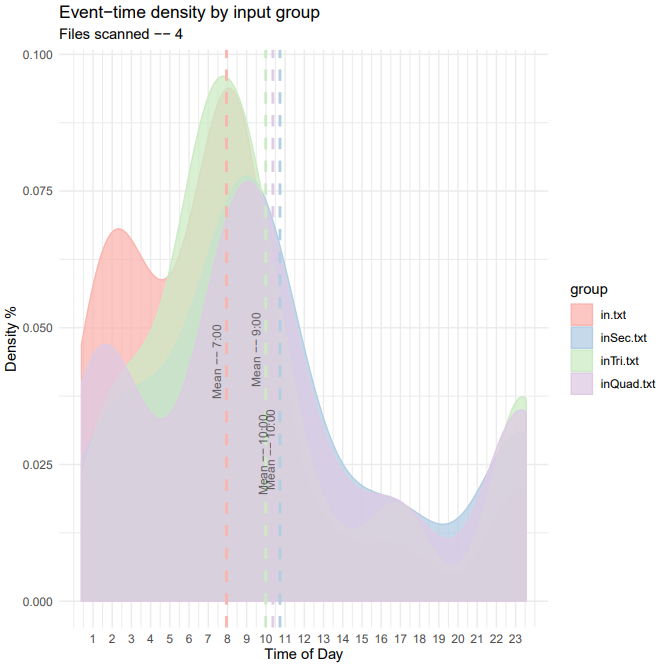 This script takes in any number of file names as arguments and takes in the date/time at the head of each line of those files as a separate event. It performs basic plotting and analysis on all input data given, after which it presents the results in an aesthetically pleasing report.