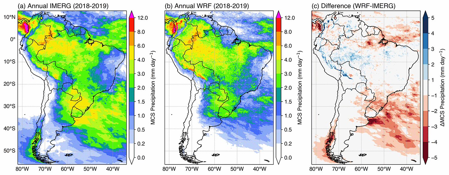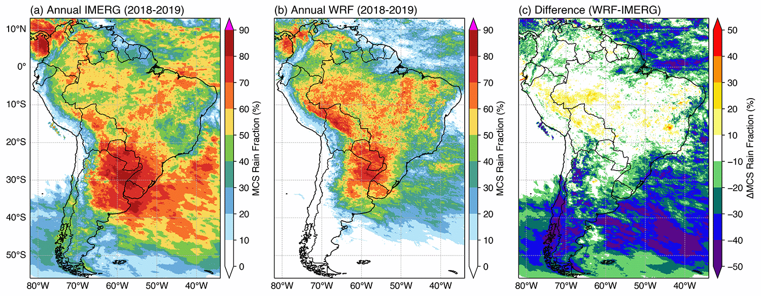 - MCSs using infrared brightness temperature (Tb) data from geostationary satellites, or outgoing longwave radiation (OLR) data from model simulations, with optional collocated precipitation data [Feng et al. (2021), JGR] or 3D radar reflectivity data [Feng et al. (2018) JAMES; Feng et al. (2019), JCLI] to identify robust MCSs;