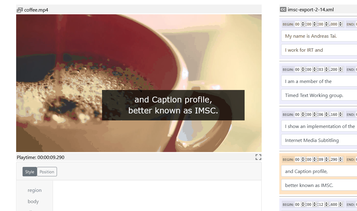 After the following steps the player bar can not be made visible using a mouse over. * Activate a subtitle by clicking on a text field (video is paused) * Activate he positioning mode. * Try to play the video.