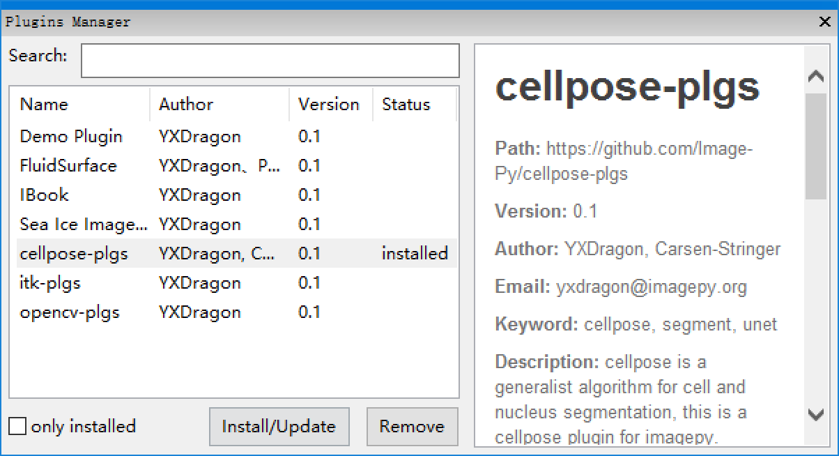 Description: cellpose is a generalist algorithm for cell and nucleus segmentation, this is a cellpose plugin for imagepy.