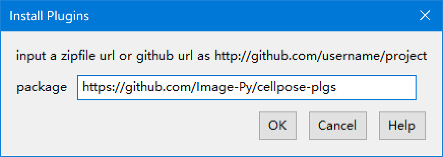 Menus: Plugins > Install > Install Plugins then input https://github.com/Image-Py/cellpose-plgs
