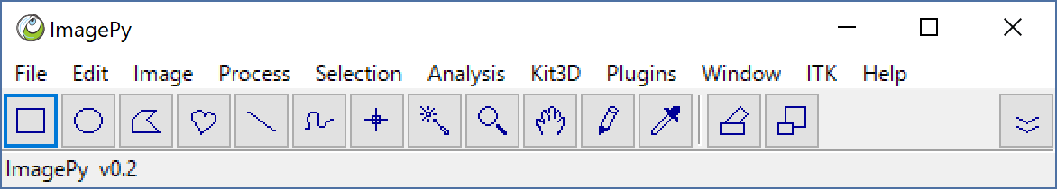It is ImagePy's MainFrame, like ImageJ. And ImagePy has contains many common function, such as open image, save image, do some filter, do a roi, draw with pencil... It requires wxpython as ui, Numpy as base structure, shapely to treat the roi, and scipy.ndimage to so dome common filter. But this project devotes to do a wrapper for itk