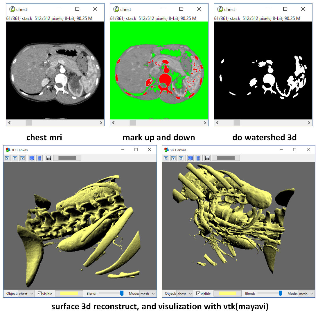 we can also do a 3d watershed, mark the up and down as two markers, then watershed on the 3d gradient image. we can get a perfect mask. Then do a 3d surface reconstruction with vtk(mayavi).