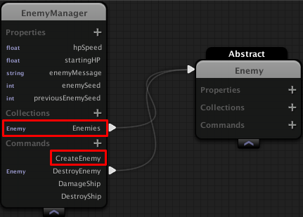 We can call CreateEnemy() any time we want to add an enemy to the collection, and override the command in the EnemyManagerController: