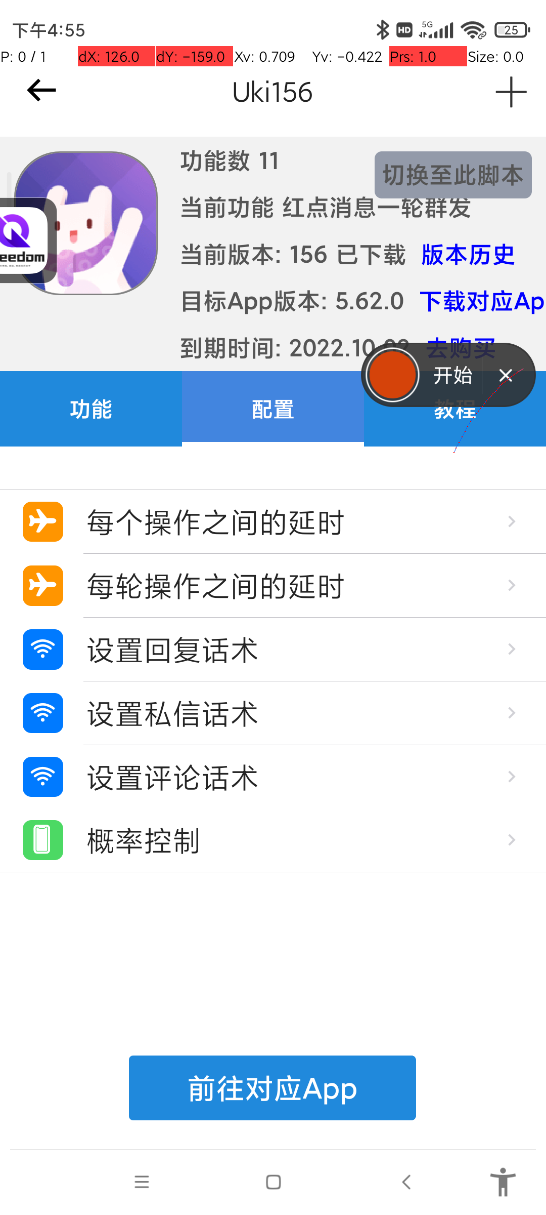 选择此功能后, 打开消息页面,点击开始, 系统将自动执行红点消息一轮群发. 群发消息的话术配置在我的对应脚本的配置里