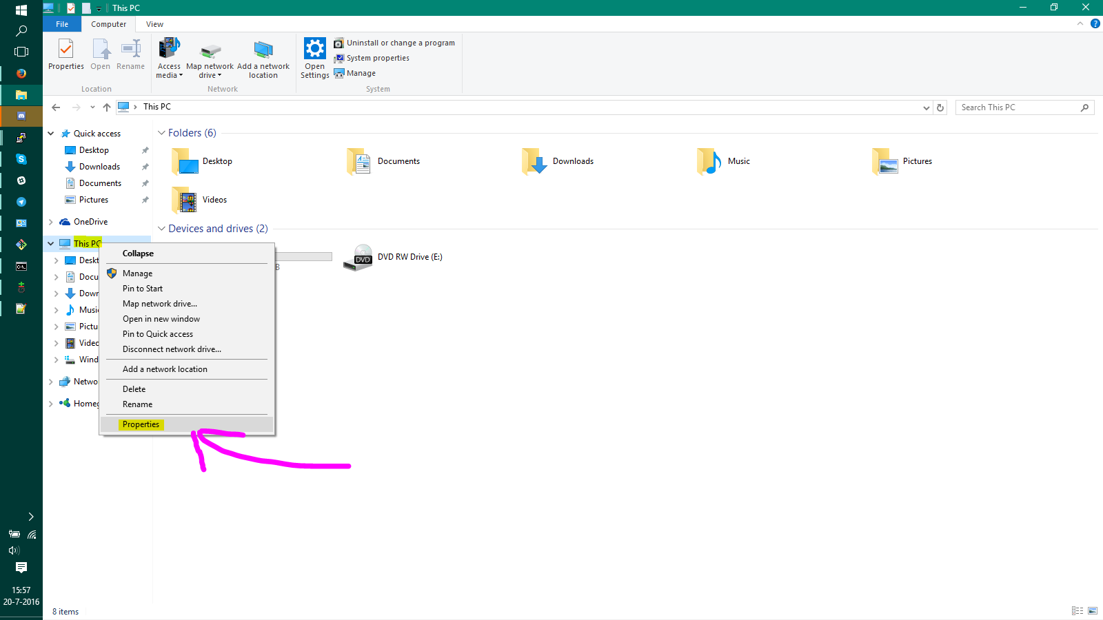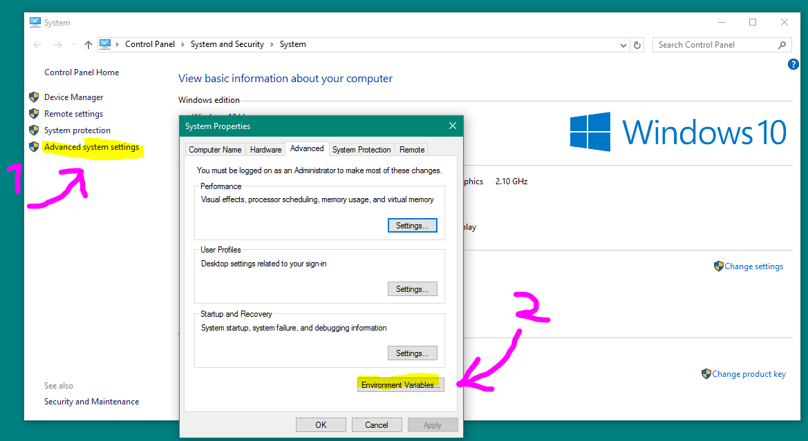 ###What's wrong: Windows defines commands in something called "environment variables", if a program isn't here, Windows doesn't understand what you mean. ###How to solve this: If you install python, it can automatically set the correct environment variables. However, if you didn't enable this feature, you need to do it manually. ###How to set them manually: Step 1] Press the WindowsKey + Pause/Break (Or right click on "This PC" and select properties)