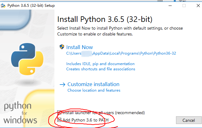 注意安装时选择 Add Python 3.6 to PATH (一定要勾选, 否则接下来无法运行)