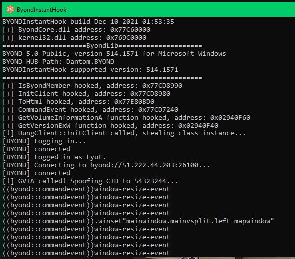 If you're experiencing rare random crashes, please head over to C:\BYOND\cid.ini and change "CommandEvent" to disable CommandEvent hooking.