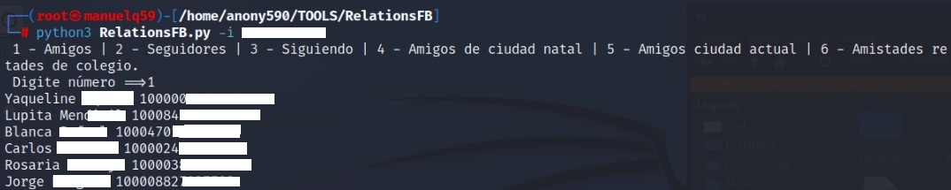 RelationsFB es una herramienta #OSINT que muestra y descarga (en Formato .CSV) las relaciones de un perfil de Facebook con solo ingresar el FBID (Identificación de Facebook); solo si los propietarios de este perfil lo tiene de modo público. La herramienta permite elegir el tipo de relación que deseas obtener según la opción seleccionada por el investigador.