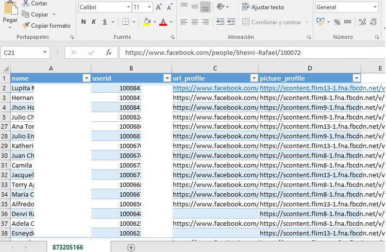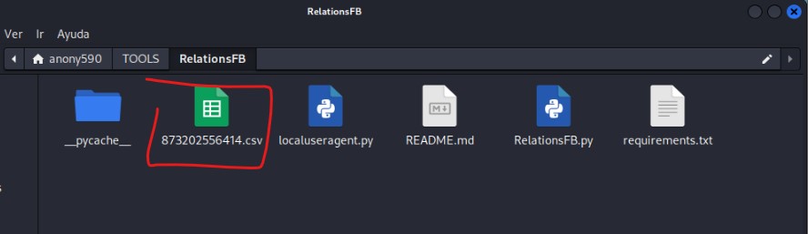 En la carpeta de la herramienta se crea un archivo en formato .CSV con el número de identificación FBID.