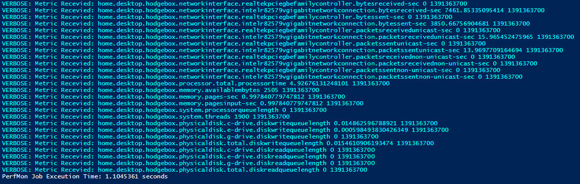The below image is what Start-StatsToGraphite like with VerboseOutput turned on in the XML configuration file looks like.