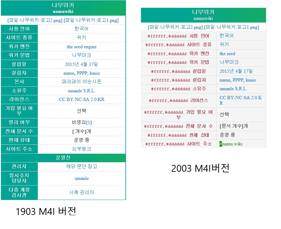 [maze1] 님의 제보 https://blog.naver.com/maze1 1903A_M4I에서는 정상 작동하였으나 2003A_M4I에서 표가 깨지고 색상이 보이지 않는 문제 발견 예시 문서 : 나무위키