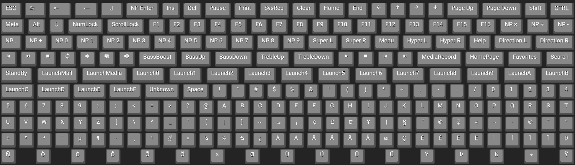 Well currently the keyboard scancodes from Godot are used, so I think every possible input should be in there. But you can customize what you want. For the keyboard you have a JSON object where all keys are the file names which will be generated, and the values will be the HTML which will be put into your base structure. Neat stuff like Material Icons as characters is already included.