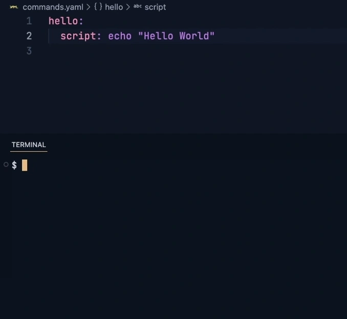 script: echo "Hello, World!"Activate your defined commands: