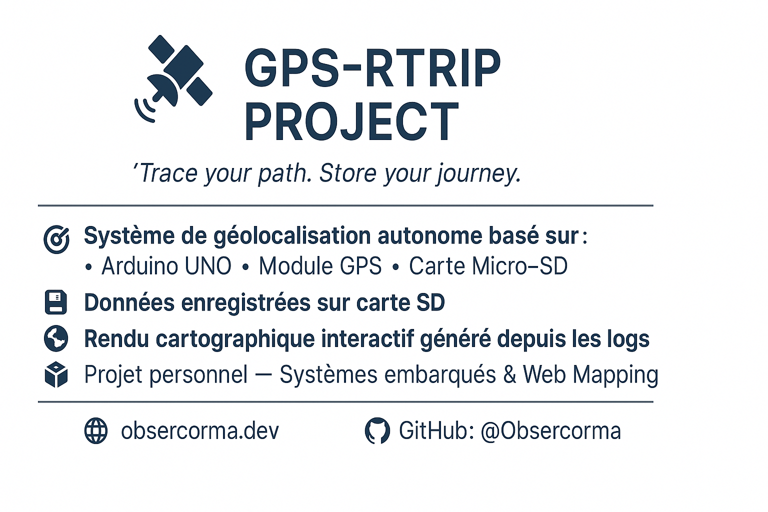 Dôté d'un système GPS ainsi que d'autres modules (Gestion des données sur une carte SD, mesures à l'aide d'un capteur...), ce dispositif me permet de suivre mes déplacements lors de randonnées. Ce petit système reprend certaines fonctionnalités que l'on peut retrouver sur un smartphone ou sur une montre connecté.