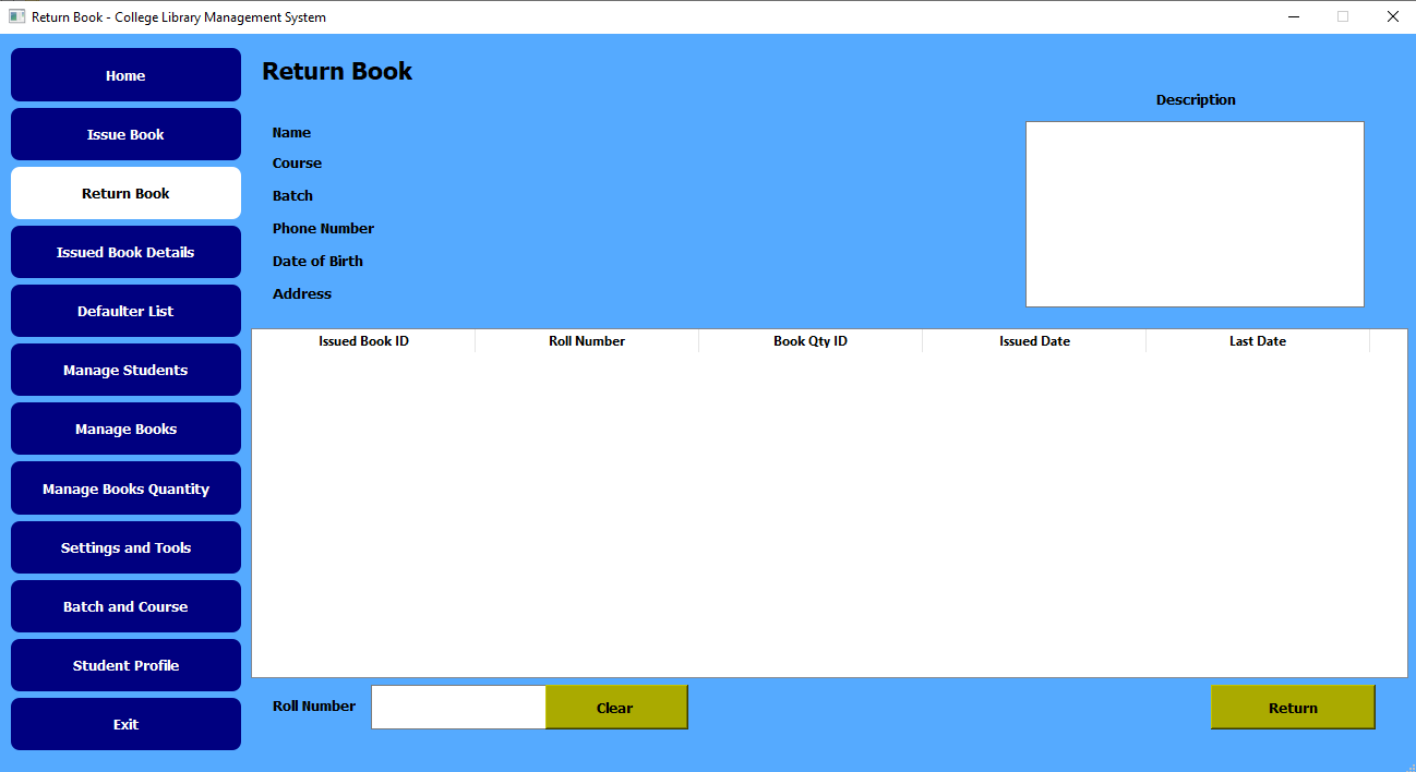 The College Library Management System was developed with Python. This is my very first project, and I will give this project to my college. I just developed this software in my own way without getting any guidance. I am trying to improve my software. Making mistakes helps me learn the skill ;)