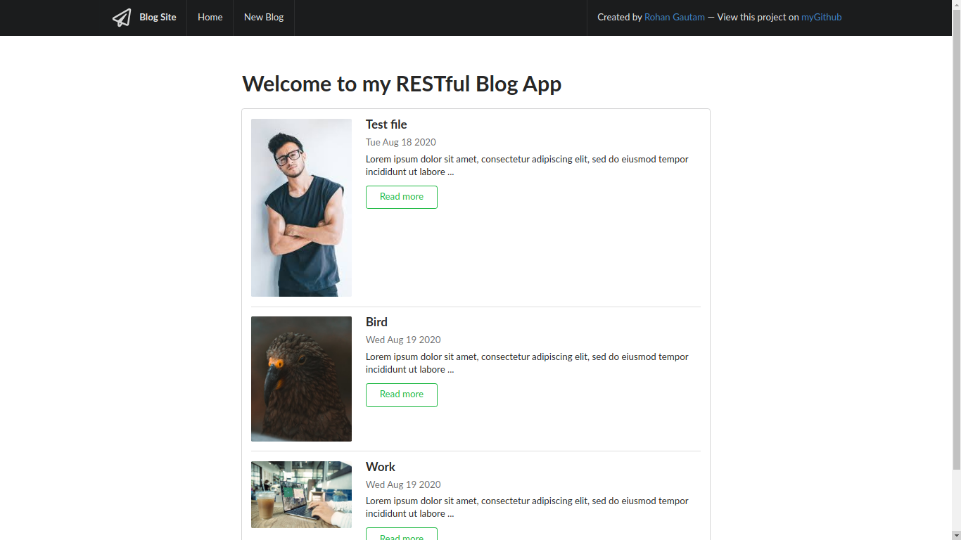 RESTful Blog App is an application that uses Express.js, Node.js, and MongoDB to allow its user to create, read, update, and delete (CRUD) various blog posts.