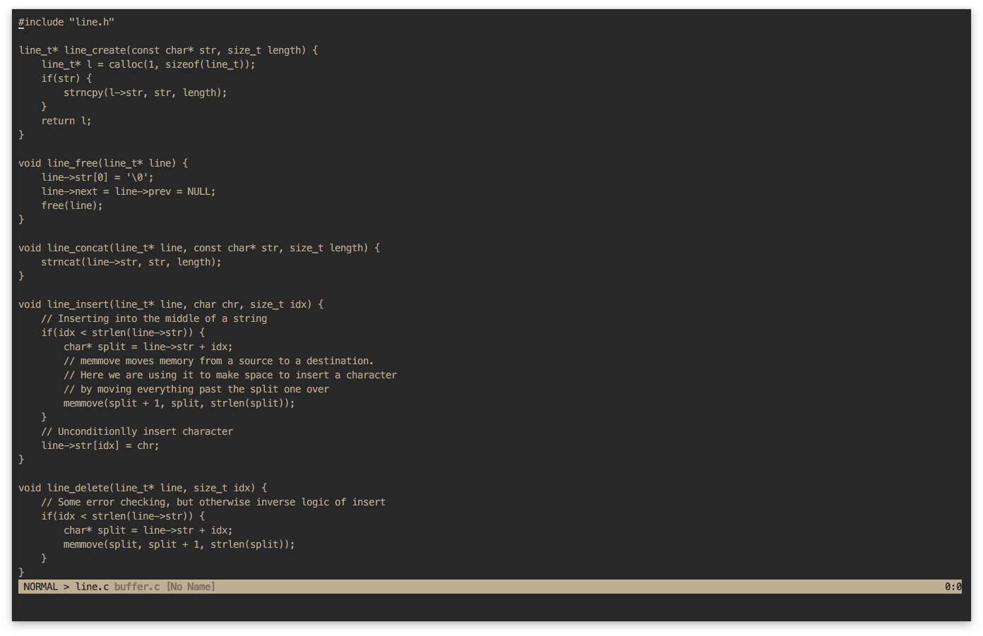 Designed to emulate Vim, the text editor uses a linked-list based design to operate.