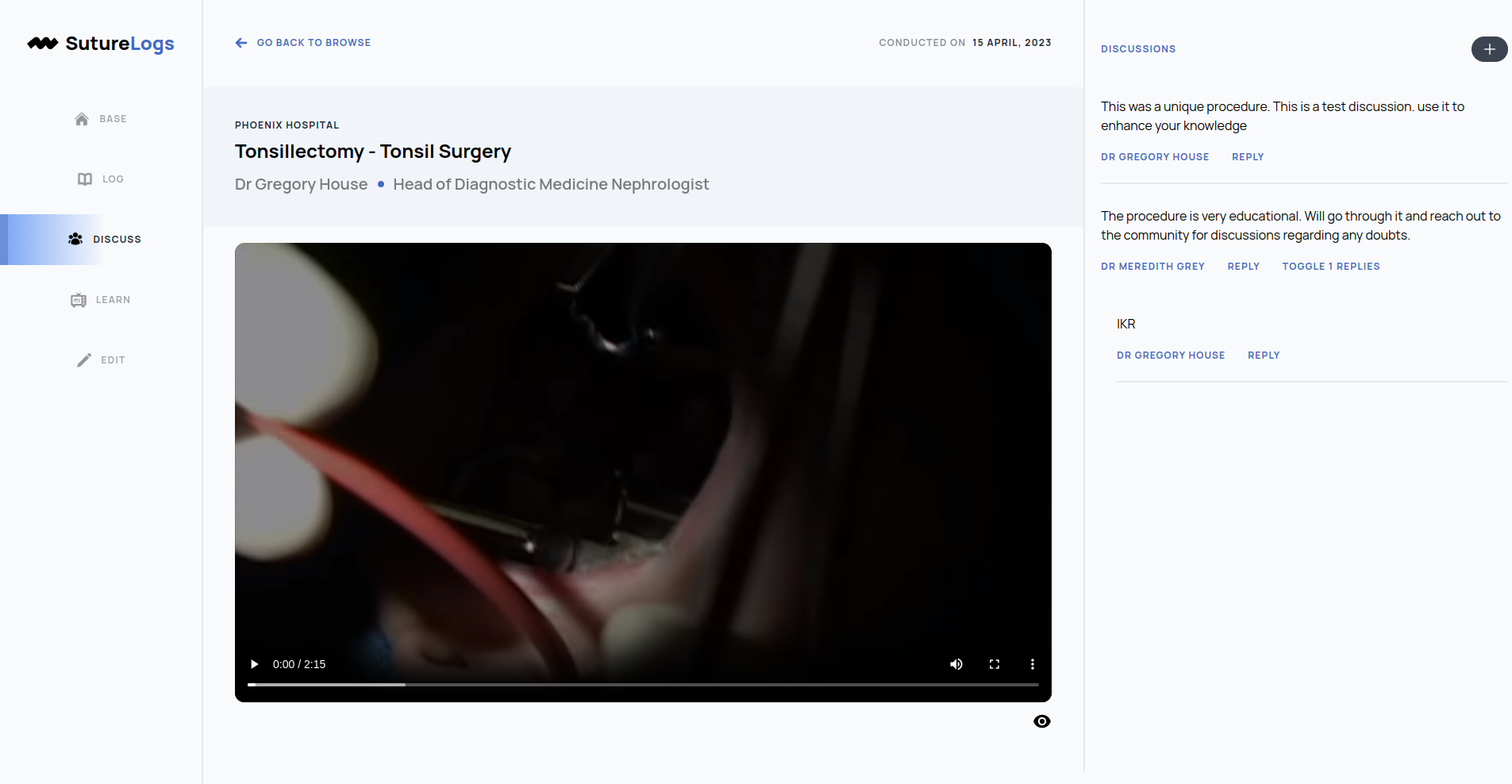 Community: Our platform fosters a community of medical professionals who can collaborate and share their expertise through our discussion feature. This promotes ongoing learning and keeps practitioners up to date with the latest surgical methods and techniques.
