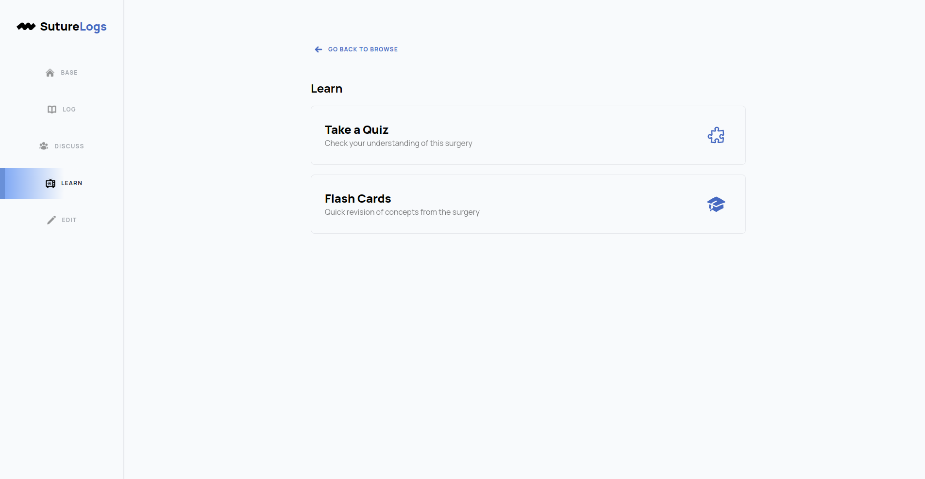 Learn: To facilitate learning, our platform offers the ability to learn from surgeries through our AI-generated quizzes and flashcards. These features allow medical professionals to engage with surgical procedures in a dynamic and interactive manner, further enhancing their knowledge and skills.