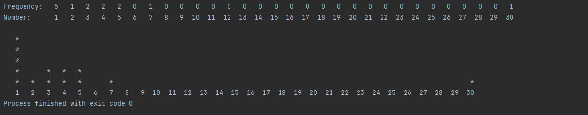 Given list of many integers. Program need to calculate how many times integers repeats. Program needs to calculate frequency from min to max element from given data List. Make a graph instead of integer number. (Bonus)