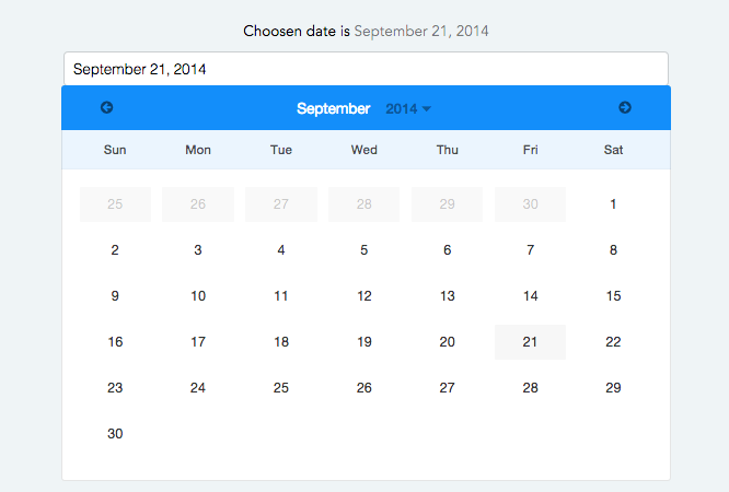</datepicker>####Custom titles You can set the titles for the month and year selectors with the date-year-title="" and date-month-title="" data attributes (default to is "select month" and "select year")